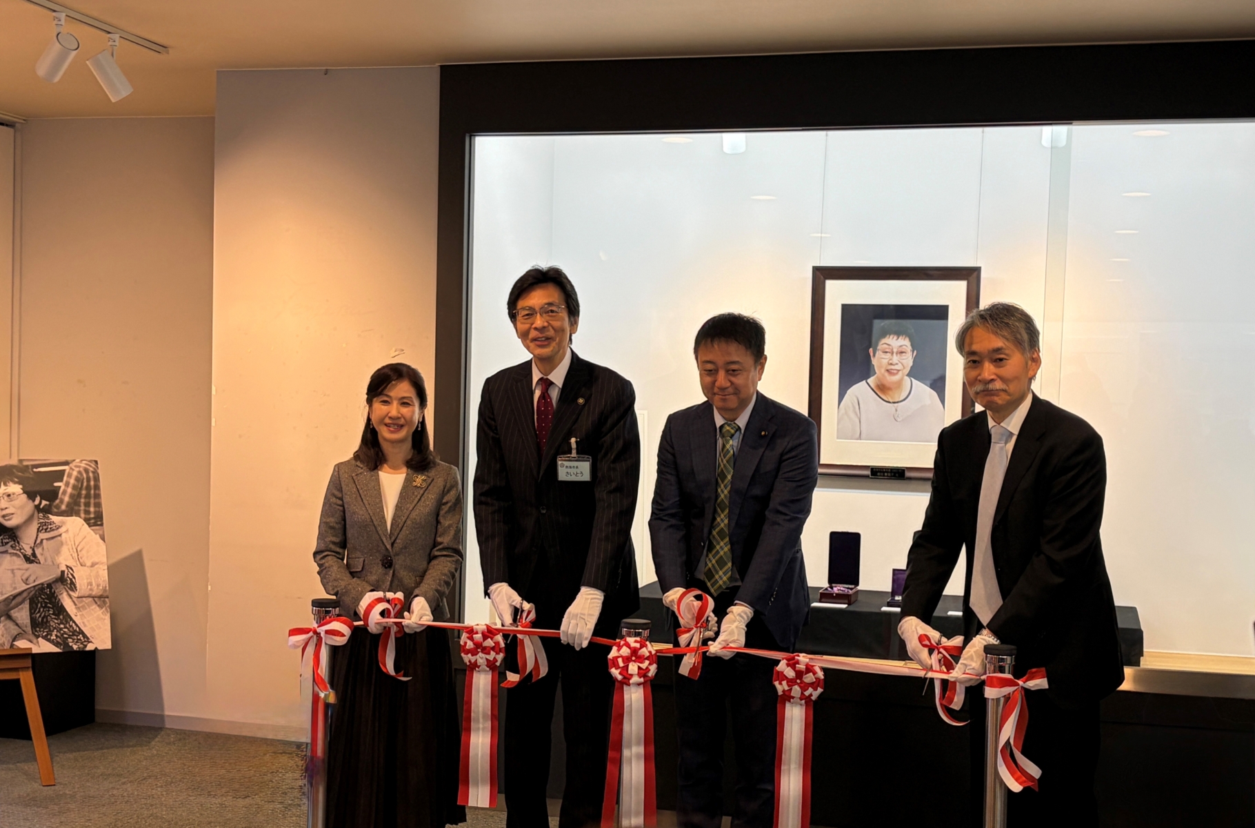 開催に先立ち、1/10(土)にオープニングセレモニーが行われ、熱海市長をはじめ、おしんの子役を演じた小林綾子さんらを招きテープカットで展示の開催を祝いました。